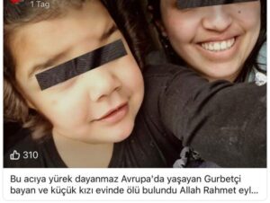 Avrupa’dan gelen acı haber, hem Almanya’daki Türk toplumunu hem de Türkiye’deki yakınlarını yasa boğdu. Almanya’da yaşayan genç gurbetçi bir anne ve küçük kızı, yaşadıkları evde ölü olarak bulundu. Yaşanan trajik olayın ardından çevrede büyük üzüntü hâkim olurken, olayla ilgili resmi makamlar tarafından soruşturma başlatıldı.