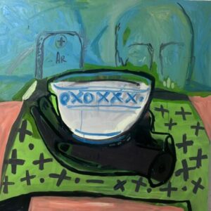 Pinot Gallizio’nun üretim bantlarını andıran endüstriyel resimleri ya da Niki de Saint Phalle’ın savaşın yankılarını taşıyan vurulmuş tuvalleri gibi, Adalı’nın işleri de hem kişisel hem de kolektif hafızanın somatik sızısını yüzeye çıkarıyor. Resimlerden sarkan avizelerden yükselen seslere kulak verdiğimizde, gündelik hayattan yükselen iç ve dış sesleri duyuyoruz. Adalı nesneleri zamanın içinde trans hâlinde, tam da bir başka şeye dönüşmek üzereyken yakalıyor; bir mektup zarfını bir eve, bir asma kilidi bir lahite veya bir tapınağa dönüştüğü eşikte çiziyor.