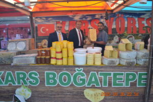 Bizim Kars’ımızın gastronomide en önemli Gıda ürünleri biliyorsunuz kaşarıdır, gravyer peyniridir, balıdır, tereyağıdır aynı zamanda dönerimiz de meşhurdur. Burada insanlarımızın en yoğun ilgi göstereceği ürünlerin tamamını burada bulabildiler. Iğdır ilimizin kayısısı meşhur oldukça ama kayısının mevsimi olmadığı için burada bulunduramadık mevsim itibariyle ama onun dışında hemşehrilerimizin aradığı yöremize ait bütün ürünleri bulabildiler.