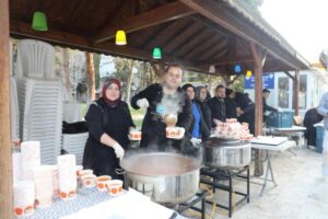 Korkuteli Belediyesi, Ramazan Bayramı namazının ardından Çayırlı Camii önünde düzenlediği kahvaltı organizasyonuyla yüzlerce vatandaşı aynı sofrada buluşturdu. Namaz çıkışında kurulan ikram alanında vatandaşlara sıcak çorba, taze simit, peynir ve zeytin servis edildi.