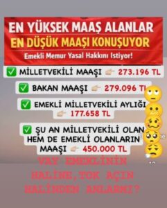En zayıf noktamız emeklilerimizin tansiyonunu yükselten, uğradıkları büyük haksızlığa, çok dikkat edilmelidir. 23 yıldan beri çeşitli yollarla aldıkları maaş azaltılmış, açıkçası ölüme mahkum edilmişlerdir. Çünkü aç kalan insan ölür. Açıkça da söylenmiştir. ” Eskiden emekli 58 yaşında ölürken , bugün 70 leride aşıyor!” denmedi mi ? Uzun yaşamak suç oldu.