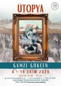 Ressam Gamze Gökçen, son dönem çalışmalarından oluşan yeni sergisi “Ütopya” ile sanatseverlerle buluşuyor. 4 Ekim Cumartesi günü saat 18.00’de Evrim Sanat Galerisi’nde açılacak olan sergi, 15 Ekim’e kadar ziyaret edilebilecek.