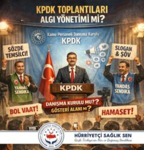 Kurulun gerçek anlamda etkin ve çözüm odaklı bir yapıya kavuşturulmasını talep ediyoruz.Aksi halde KPDK, adı “danışma kurulu” olsa da, uygulamada bir “tiyatro sahnesi” olmaya devam edecek; bu durum ise kamu çalışanlarının temsil mekanizmalarına olan güvenini daha da zedeleyecektir. Kamuoyuna saygıyla duyurulur.