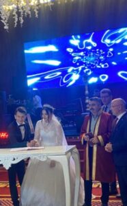 Görkemli düğün töreninin nikâh merasimi, Yıldırım Belediye Başkanı Oktay Yılmaz tarafından kıyıldı. Ayrıca, önceki dönem Bursa Büyükşehir Belediye Başkanı Alinur Aktaş, Bursa il ve ilçe meslek odaları başkanları ile çok sayıda yerel yönetici de etkinlikte yer aldı.