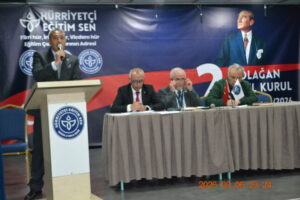 Kıymetli yol arkadaşlarım, Elbette eksiklerimiz olmuştur. Elbette daha iyisini yapabileceğimiz alanlar vardır. Ancak şundan emin olun ki hiçbir zaman art niyetle hareket etmedik. Hiçbir zaman kişisel hesapların peşinde olmadık. Bizim tek hesabımız; eğitim çalışanlarının onurunu ve hakkını korumak olmuştur.Bugün yeni bir seçim sürecindeyiz. Bu süreç bir ayrışma süreci değil bir yenilenme, bir tazelenme sürecidir. Bu seçim, bir bayrak yarışıdır. Biz bu bayrağı daha yukarı taşımak için adayız. Gelecek dönemde hedefimiz; üye sayımızı daha da artırmak, genç öğretmenlerimize daha fazla ulaşmak, kadın üyelerimizin sendikal süreçlerde daha aktif yer almasını sağlamak, ilçelerdeki ve okullardaki temsilciliklerimizi daha da güçlendirmektir.