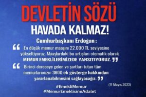 2023 yerel seçimleri öncesinde Cumhurbaşkanı Recep Tayyip Erdoğan’ın Hak-İş Kongresi’nde yaptığı açıklama, milyonlarca memur ve memur emeklisi için tarihi bir vaat olarak kayıtlara geçmişti.