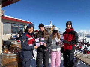 Bursa İl Jandarma Komutanlığı Aile İçi Şiddetle Mücadele ve Çocuk Kısım Amirliği personeli tarafından, Uludağ Milli Parkı’na kış turizmi amacıyla gelen vatandaşlara yönelik bilgilendirme faaliyeti gerçekleştirildi.