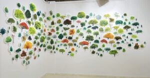 Sergi, ekolojik kriz çağında insanın doğa ile kurduğu ilişkileri sorgularken, kültürel bellekte suya, toprağa ve yeşile, ağaçlara atfedilen simgesel değerlerin nasıl şekillendiğini, aktarıldığını ve dönüşüme uğradığını tartışmaya açıyor. Efsaneler, ritüeller ve sözlü tarih, doğayla kurulan ilişkinin yalnızca fiziksel değil, etik ve duygusal boyutlarını da görünür kılıyor. Bu çerçevede doğaya yönelen bakış, yalnızca kaynakların tükenişine değil, aynı zamanda kaynakları tüketenler, umarsızca yok edenler sebebiyle anlamların da eksilişine işaret ediyor. “Yüzeyin Kabuğunda” sergisi bu eksilmenin izini sürerek toplumsal farkındalığı ve bilinç yükselişini yüzeyin kabuğunda değil, onun altında aramayı öneriyor.